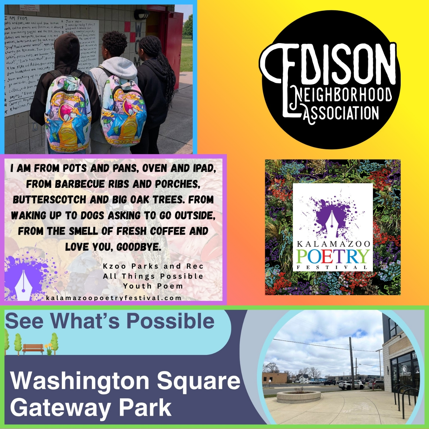 The Edison Neighborhood Association will also be partnering with Kalamazoo Poetry Festival and a local mural artist to bring the “All Things Possible” youth poem to life as a part of the new Washington Square Gateway Park in 2026!
